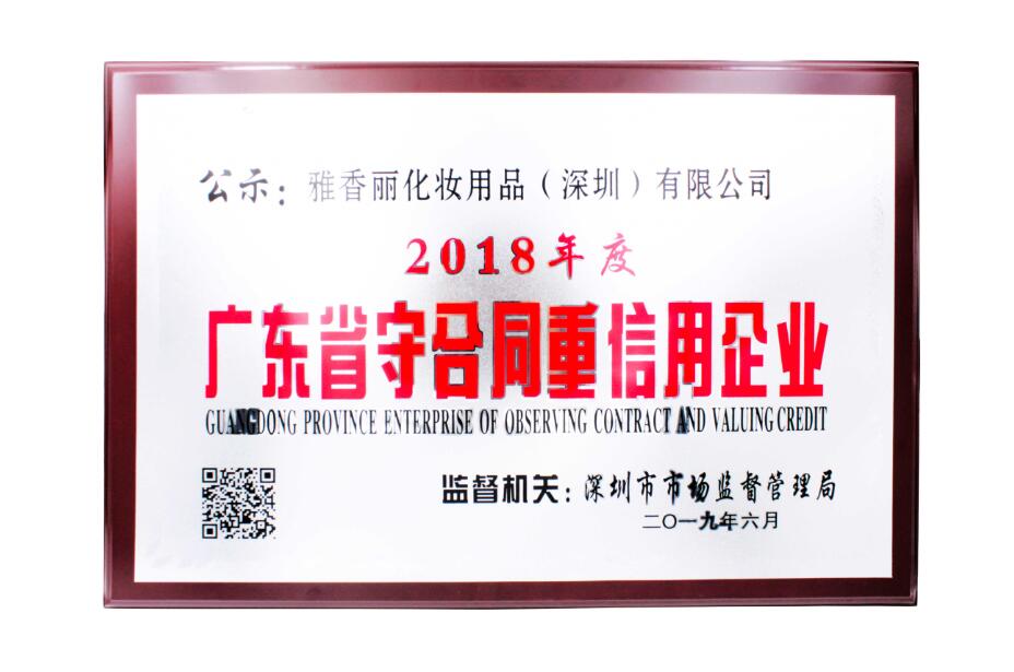 2018年度雅香麗被評為廣東省守合同重信用企業